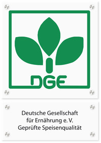 Die Angebote/Komponenten mit dem DGE-Logo entsprechen dem „DGE-Qualitätsstandard für die Verpflegung in Kitas“ und wurden von der Deutschen Gesellschaft für Ernährung e. V. (DGE) als eine Menülinie zertifiziert.